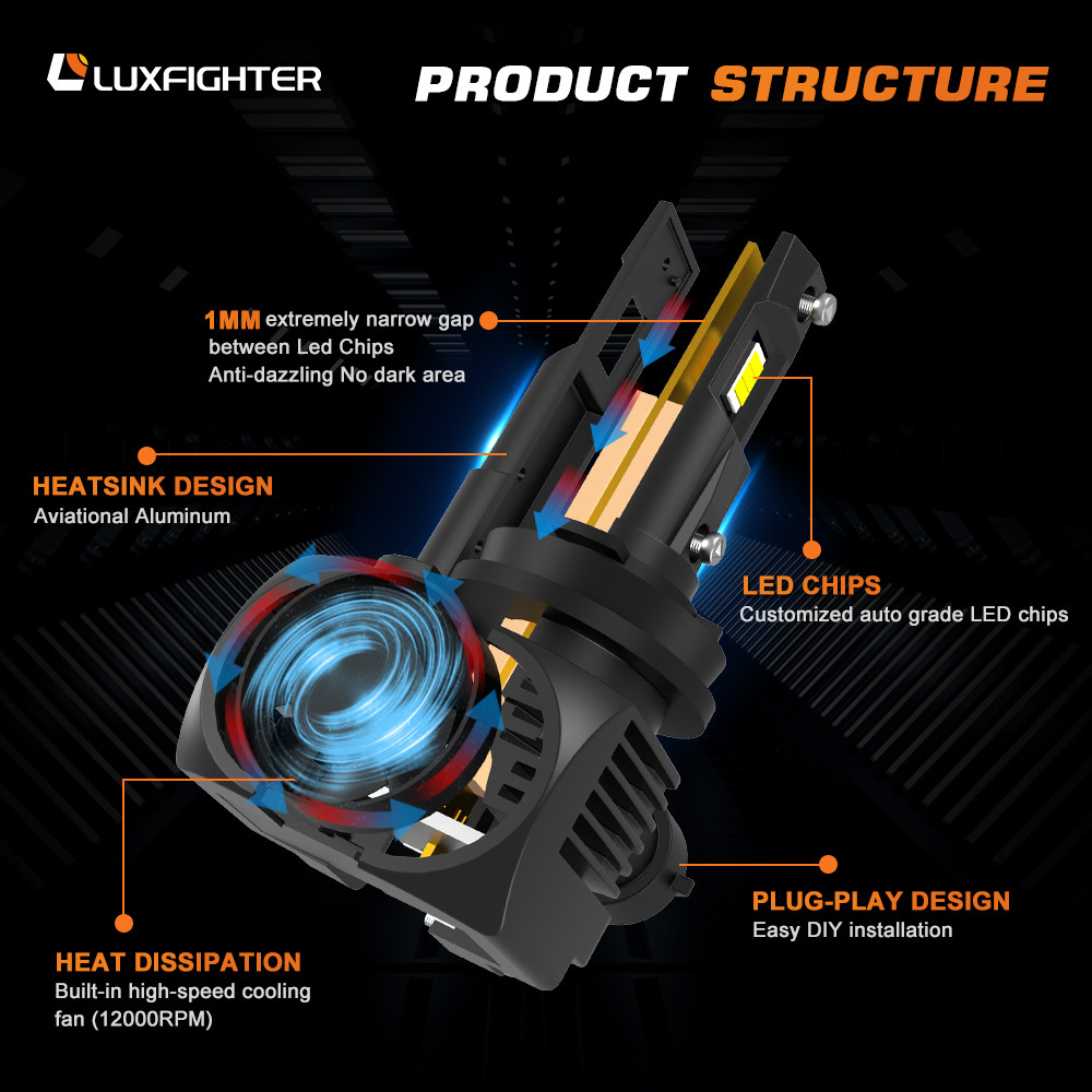 2. آٹوموٹو گریڈ ایل ای ڈی چپ اور پتلی پی سی بی بورڈ کم اور اعلی بیم کا بہتر بیم پیٹرن بناتا ہے۔